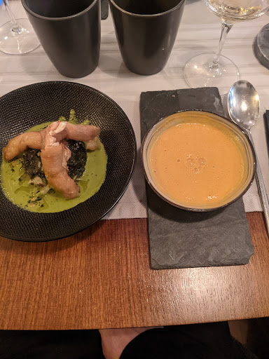 Read morej'aurais presqu'envie de ne pas partager cette adresse pour qu'elle reste accessible mais ce serait très injuste pour Sophie et Florian qui méritent d'être connus et reconnus pour leur talents . A ma connaissance pas d'autre resto équivalent sur Aurillac , même si il y en des bons. Pour pouvoir y manger, il faut réserver à l'avance et même le samedi midi. Nous avons dégusté le menu surprise du Marché et tout était parfait : de l'accueil (souriant et détendu ) à l'assiette ( créative avec des produits simple mais de qualité) en passant par le vin ( excellent et naturel ) et l'addition ( très bon rapport qualité-prix) . Nous nous sommes régalés car la cuisine est inventive , équilibrée et juste, et le vin surprenant et excellent ; nous avons hâte d'y retourner pour découvrir le menu du...