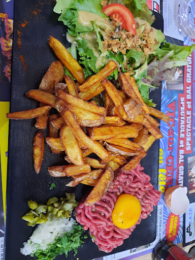Nouvelle habitante de Vic sur Cère, j'ai découvert ce restaurant par hasard. Ce qui est important est évidemment l'accueil lorsqu'on arrive dans un endroit quel qu'il soit. Nous avons été reçues et servies mes amies et moi , avec gentillesse et sourire. Côté cuisine, nous avons été enchantées par les plats que nous avons choisi et en particulier par les frites maison, plutôt pommes allumettes d'ailleurs, mais tellement délicieuses que nous avons voulu connaître la variété de pommes de terre employée. Le chef nous a gentiment renseigné.nous nommant même son fournisseur. Un endroit agréable avec un côté cosy grâce aux confortables banquettes, j'y reviendrai...