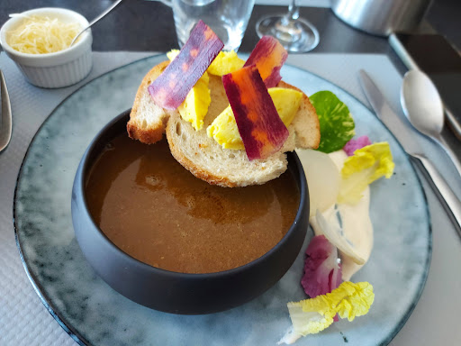 Read moreBeautiful surroundings and very welcoming. Our dog was allowed in and pampered with fresh water. We chose the menu du jour at 18€. Food was amazing, tasty and with lots of different veg. Even the bread tasted homemade and freshly baked. And guess what: the waitress speaks perfect English!!! We’ll...