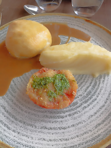 Read moreRepas pris un samedi soir. Le cadre est agréable, en particulier la véranda dans laquelle nous étions. Accueil par une jeune serveuse très aimable et serviable. Repas pris à la carte, avec un plat et un dessert. Les menus n'ont pas vraiment d'intérêt tant sur leur contenu, en particulier celui à 26€ qui propose peu de choix, et avec des plats très basiques. Un autre à 32€ dont la composition reste au choix du client en prenant entrée - plat - dessert à la carte. Il serait bienvenu d'avoir un menu intermédiaire, autour de 25€ proposant entrée-plat ou plat-dessert Plat chaud principal très bon, bien cuisiné et copieux En revanche le dessert plûtot décevant, les 2 que nous avons pris sont assez basiques, même si la présentation donne une bonne impression. Tant le fondant chocolat que la charlotte ressemblent fortement à des produits que l'on peut acheter chez Th.... , la chaine de magasins de surgelés. A tel point que nous nous sommes demandés s'il s'agissait de desserts maison ou achetés tout faits, et juste préparés sur place. Très décevant et donnant l'impression d'être trompés sur la...