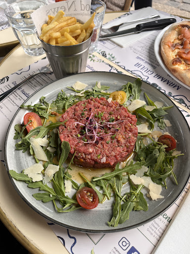 He goes to the kitchen, comes back to tell me, you want to order something else, there was no more asparagus, that's why you don't have any. Unbelievable, I am served a dish that highlights an ingredient that they no longer have and say nothing, unheard of. When there is a lack of ingredient, it is indicated from the start that the dish is no longer available. Again very aggressively he tells me you want to order something else, I ask him if he listened to what we told him (while remaining friendly) that it was not proper or inadmissible to serve an incomplete dish and not to report it. Especially since he would have charged us the full price for it. If my friend hadn't already eaten half of her dish, we would have left. I order a pizza. It had no taste, instead of distributing the ground meat evenly over the entire surface, it is piled up in a few places, the dough is so thin that the pizza does not hold together at all and really no taste.