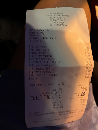 Read moreArriver à peine à 21h30 le 30/06/2025 avec mon beau père mon conjoint mes deux enfants. Mon conjoint a était changer le petit ma fille a dû aller chercher la chaise haute car on nous l’avais pas apporter nous avons du la nettoyer car toute collante.Mon conjoint a peine revenu avec le petit des toilettes même pas installer on nous demande ce qu’on veut boire et manger. On commande le repas de la grande on commande un œuf mayonnaise ou nous bas non c’est pas dans le menu enfant. Bas tu le met à la carte si on le commande on le sais. Planche de charcuterie même pas fini qu’on nous sert les plats. Mon conjoint a même pas manger son tartare de bœuf trop de moutarde immangeable bon on nous l’a offert. À peine fini le plat qu’on nous demande les desserts car la cuisine s’en va à 22h10 3cafes de commander servit en même temps que les desserts car alors qu’on les avait demandé après et il était à moitié froid. Serveuse très froide. Pourtant on n’es déjà venue plusieurs fois se mois ci toujours était agréablement accueilli mais là très déçu. La prochaine fois qu’on viendra le soir et qu’on verra que sais cette serveuse on fera demi tour. On n’était venue pour passer un bon moment en famille bas sa était tout...