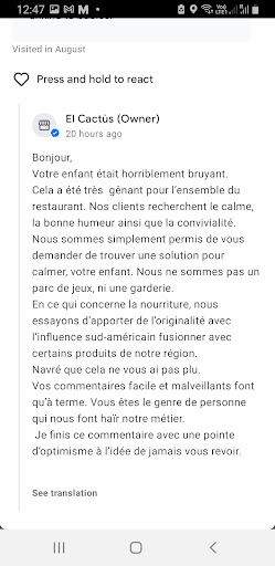 We zijn maar 1 dag in Avallon op een camping en wilden lekker uit eten gaan. We kwamen bij El Cactùs aan en de eigenaar (denken we) vertelde dat het toilet helaas niet rolstoelvriendelijk is (gezien onze situatie), maar dat maakte ons niet uit.