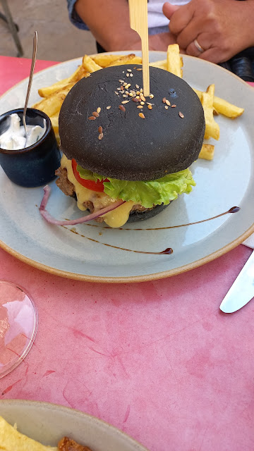 Read moreWe sheltered from the rain here and ended up eating lunch! We had a two course meal opting for a main and desert. The mains were very easy to eat, the burger was delicious and the chips very nice. The food seems simple (few elements to each dish) and made of tasty ingredients. For the children I wished they offered condiments but perhaps that's an English thing not French. The puddings were ridiculously yummy and the panna cotta was worth the calories!!! We had a nice carafe of wine and generally enjoyed ourselves with a view over the old streets. We're not foody or fussy people, just hungry tourists with children and this...