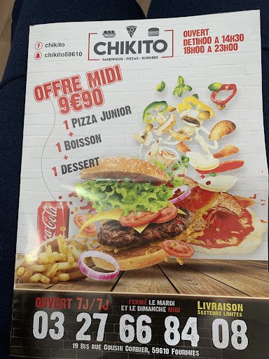 Read moreJe commande depuis des annĂ©es chez Chikito lors de mes astreintes et jâai toujours Ă©tĂ© trĂšs content de la qualitĂ© des produits. Frites trĂšs bonne et tacos dĂ©licieux et pas gras !