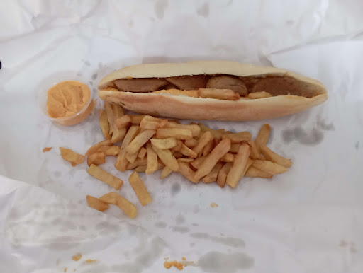 Read moreJ'ai commandé un americain-sandwich (d'ailleurs la personne qui as pris la commande ne semble pas savoir que dans un américain il y as un sandwich puis-ce qu'il a demandé a ma compagne de préciser si il s'agissait d'un américain ou bien d'un sandwich, ça fait peur). Ce que vous voyez sur la photo est la manière dont j'ai reçu le colis, soit 10 grammes de frites a peine et une baguette qui donne aussi envie qu'un vomi un lendemain de cuite.