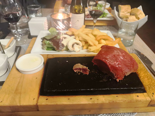 Read moreNous avions réservé une table pour 4 personnes . Sur place il nous est impossible de dîner sur la terrasse alors qu'un petit effort aurait permis de nous satisfaire. Dans un restaurant quasi vide on nous propose une table à la sortie de la cuisine... Avec impossibilité de changer. Le temps nous montrera qu'aucune des tables que nous sollicitons était réservé. Passons au service. Un service par du personnel autoritaire à la limite de la correction. La carte maintenant est d'une pauvreté absolue. Face à un tel dilemme pas d'autre choix que de choisir une viande. Là c'est le clou du spectacle. On vous présente une viande sur une pierre et débrouillez vous pour la cuisson. Mieux encore la pierre n'étant pas assez chaude vous vous retrouvez avec une viande bouillie. Nous arrivons maintenant au dessert. Je commande une tarte aux fraises et je me retrouve avec un fond de tartelette congelé un monceau de crème indescriptible et une fraise découpée en lamelles. Je passe sur la carte des vins complètement insipide. Je choisis cependant la bouteille TOP de la CARTE qui est du même niveau que le reste Bref la soirée qu'on a vraiment...