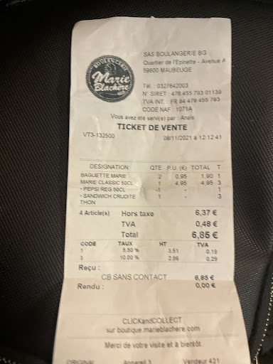 Read more"Boulangerie" qui des 17h30, n'a plus de simples baguettes, ou alors vends des baguettes pas vraiment fraîches. Pour une enseigne qui ferme à 19h30, je ne trouve pas ça sérieux... c'est de pire en pire et ça vaut pour les deux "Boulangerie"... par contre proposer d'autres produits forcément plus cher ils sont très présent... Elu "meilleure saveure depuis 2016", il faudrai peu être se mettre à jour. Et niveau accueil, c'est...