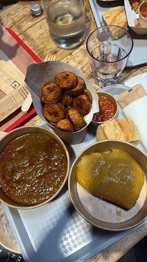 A l’intérieur le lieu est cool, bien pensé, bien construit, divers conteners avec différentes cuisine du monde ! Et franchement c’est bon et tarif vraiment cool 👍🏽 nous connaissions les pizzas de moustache ou la réputation n’est plus à faire 👍🏽👍🏽 et nous avons essayé la cuisine créole c’était délicieux et tout fait maison ✅ Par contre Il n’y a pas assez de tables et chaises et comme on est en France, les gens ont une mentalité assez particulière à savoir « c’est MA table, on partage pas » on te regarde de travers avec ta pizza à la main à essayer de trouver où tu vas la poser pour pouvoir boire ta bière et profiter ! L’établissement annonce ne pas prendre de réservation, pourtant il y a des tables inoccupées avec des fringues qui veulent dire « réservations » ! Nous avons malgré tout posé notre pizza et nos bières sur cette table, de suite un minot de 20 ans de la sécurité vient te dire «ça va pas être possible c’est réservé » en fait je ris fort de cette stupidité sans nom : TABLE pour des vestes 😂 On reprend notre pizza et il reste un peu de place sur un mange debout, donc très gentiment et avec le sourire nous demandons à une nana, la cinquantaine, tiré à 4 épingles, si ça la dérange si on pose notre pizza sur le mange debout ! Ben si en fait, elle nous toise du regard et d’un air dédaigneux accepte à contre coeur ! bref, c’est un état d’esprit, perso ça ne m’a pas du tout plu, et nous avons été 4 à être déçu ! Les gars redescendez on est sur Avignon à côté des chemins de fer et quand bien même sur le plus haut trône du monde tu seras toujours assis que sur ton cul ! C’est dommage cela aurait pu être un lieu super de partage, convivialité, franche camaraderie ! Le fond est sympa mais la forme est...