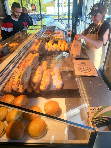 Quick walk from the TGV station gives you good salad and pain au Chocolat at much better prices. The staff is friendly, there is place to seat inside and outside. For 5 stars what is lacking are power outlets for travellers, and the outside feels a bit dirty - I guess it's more a question of the bakery being located in a bigger commercial park than anything they can...