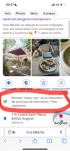 Read moreWe so enjoyed Bibiche restaurant. It is located in an open courtyard where there were other restaurants. The owner and server were very kind and gracious and the food was excellent, especially the hour was getting late and they were closing soon. The pricing was good and the entree portion size was generally good for France—where the entree sizes are not that big. In any events my wife and I are very fit with good appetites, so we ordered 4 entrees. Each dish was an excellent dish—with the Tuna Tartare the best, in fact we ordered as part of the first serving and second.