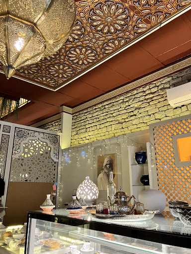 Read moreNous étions deux un midi de jour de semaine et avons pris le menu du jour (29,90€ par personne) et une boisson. Commençons par le positif : on n’a plus faim quand on sort !!! Il y a de bonnes quantités. Un petit quelque chose pour grignoter est arrivé dès qu’on a été assis. L’entrée était bonne (malgré un peu trop d’huile à mon goût, et ça me fait bizarre de manger une baguette dans un restaurant oriental). Le plat (tajine de poulet au citron confit) était OK mais étonnant aussi : le poulet était rosé au centre (dommage, j’ai pas eu de chance), on ne sentait pas vraiment le citron confit, les pommes de terre étaient fondantes mais ça faisait lourd avec la semoule. Les amandes (entières et effilées) venaient ajouter du croquant au plat et les olives vertes apportaient un peu d’acidité, c’était chouette. Le dessert ressemblait très fortement à un moelleux picard (après il était bien réchauffé !) accompagné d’une boule de glace au caramel. Disons qu’on ne s’attend pas à ce genre de dessert dans ce genre de restaurant ! L’emplacement est bien décoré, et on vient vous demander toutes les 5mn si tout va bien. J’ai vu qu’il était possible d’acheter des pâtisseries orientales à 1,90€ pièce à l’entrée (j’ai été étonnée de ne pas voir de corne de gazelles par contre ! Peut-être y avait-il déjà eu razzia !). Il y a une musique orientalisante en musique d’ambiance sur une petite enceinte du côté de la cuisine. En bref, établissement qui fait un peu guindé, mais on ne s’est...