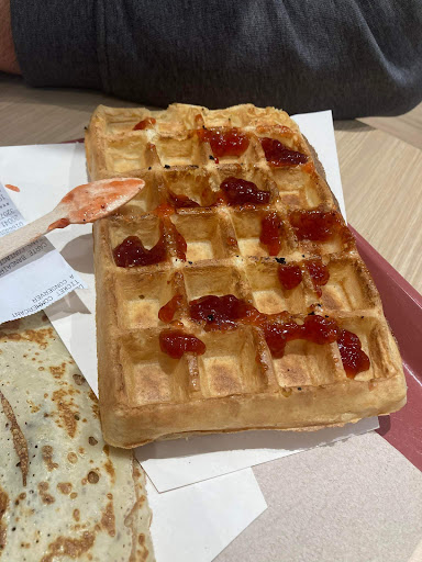 Tried the Flunch French fast food restaurant for the first time. It is a bit confusing using it but a slim chap with glasses explained. You pick up drink, starters and desserts from self service. In the self service section there are pre made salads and other starters. There is also load your own salad pay by the size of your bowl.