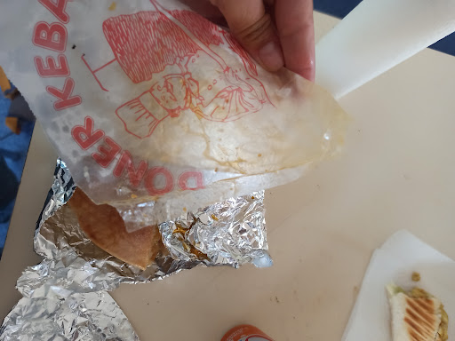 La broche de poulet aurait dû me mettre la puce à l oreille. C est souvent des broches surgelées de piètre qualité d Allemagne. Je sais pas si c est le cas ici , mais sûrement. Il y avait des bouts de gras durs dans le kebab...
