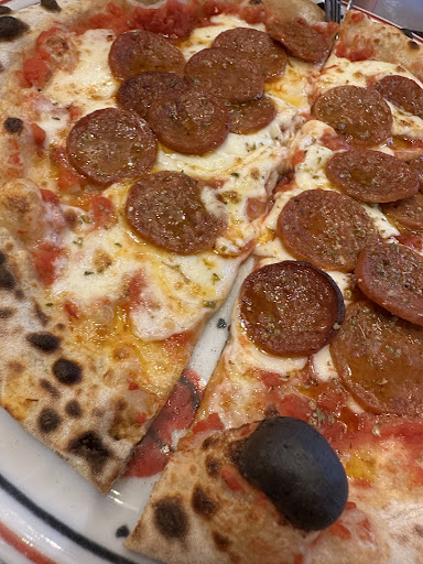 Dans l'assiette, nous avons opté pour deux entrées et deux pizzas. Au niveau des entrées on a pris la Focaccia et la Sweety Salmon Bruschetta. On voulait tester la Focaccia pour avoir une idée de ce que pourrait donner la pâte à pizzas et l'association de saveurs de la seconde entrée m'intriguait. Cette entrée nous a régalé. J'ai particulièrement apprécié le coeur de burrata fumée qui donnait de la fraîcheur à la bruschetta. Au niveau des pizzas, mon conjoint a opté pour la Cheezy Lara, et de mon côté j'ai choisi la Funky Bolo Queen supplément poivrons marinés (après avoir hésité quelque peu...). Si vous aimez les pizzas style napolitaines avec la pâte fine et les bords épais et moelleux, c'est ce que vous pourrez retrouver chez Italian Queen. De mon côté, j'adore ça, et j'ai trouvé celle de ce restaurant réussie. Visuellement, je m'attendais à avoir un peu plus de viande hachée sur la garniture, mais en fin de compte, gustativement, j'ai trouvé que le dosage était bon.