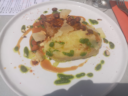 Read moreRestaurant découvert par pur hasard... Et le hasard fait bien les choses. Le croustillant de bar avec sa ventrèche de thon mariné, était excellent, tout comme le le risotto crémeux aux tomates séchées et parmesan, partulierement fondant, savoureux et original. Certainement le meilleur risotto que j'ai jamais mangé. Assiettes particulièrement copieuses. L'accueil est dynamique et sympathique. Après le repas, j'ai complimenté le chef, qui gentiment a fait une confidence à son admirateur. Nous n'avions pas réservé, les seules places disponibles étaient en intérieur. Arrive alors ma seule petite critique, à l'intérieur, les tables sont en hauteur et les chaises aussi. Très joli et original, mais... Avec l'âge, les raideurs changent de place, et j'aurai préféré une table et des chaises plus classiques. Ceci dit c'est parfait pour une clientèle d'actifs jeunes, et, à l'expérience, ce n'était pas si inconfortable que je pensais. Nous reviendrons, lorsque nous repasserons...