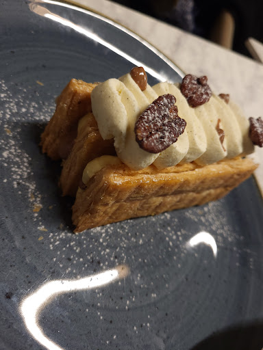 Read moreJe rejoins les autres avis concernant les prix surévalués au regard de la prestation et des quantités. La vaisselle est très belle, le menu se renouvelle régulièrement et tient à coeur de promouvoir le local. J'aurais souhaité que lors de notre avant-dernière visite , on ne nous serve pas une focaccia de la veille (ce qui a été explicitement confirmé par la serveuse mais sans autre commentaire ou action). De même récemment, les pâtes carbonara ont été servies en forme de vague masse agglutinée et pâteuse (surcuisson ?). Ce n'est pas une catastrophe, l'erreur est humaine et je ne le mentionnerais pas si les prix étaient plus justes. Le service est globalement vraiment bien (je remercie particulièrement Manon). En revanche, le serveur qui ajoute "mon très cher monsieur", "ma très chère madame" et "mes très chers messieurs-dames" à la fin d'absolument chacune de ses phrases pourrait s'abstenir ; c'en est devenu si lourd que nous avons fini par opter pour le room-service. Bref, un bon restau qui est le bienvenu en cas de séjour à l'hôtel parce qu'il n'y a rien d'autre dans les environs, mais je n'y viendrai pas si je n'avais pas de chambre.