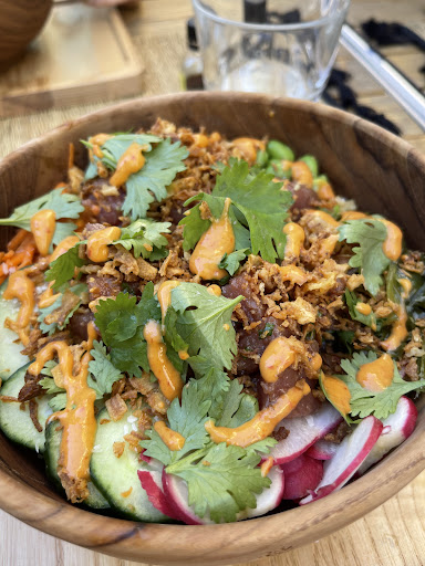This was without a shadow of a doubt the lowest quality poke I have ever had the misfortune of receiving. It was absolutely vile the fish was off. The atmosphere, slightly less depressing than Avignon in general but still very low vibes. Absolutely the most grimey salmon ever. Ever. It literally stank horrendous. If you have never tried poke you might think this is normal. It’s not it’s...