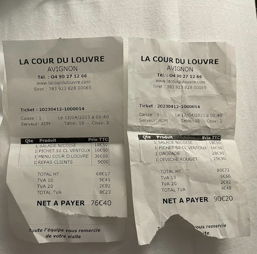 We had the most horrible dinner experience at this restaurant during our two-week trip to France. AVOID AT ALL COST IF YOU CANNOT READ FRENCH! I ordered dinner Ă la cart (salmon ceviche and sea bas) which the owner said would cost 36 euros. My partner ordered salad Nicoise (18 euros). We also ordered a 50 ml RosĂš (16 euros). The food was decent. HOWEVER, when we got the bill there was a line with the French word âboeufâ which means âbeefâ. When my partner pointed this out to the owner (we thought she made an honest mistake), the owner started screaming at us, mostly in French, in front of all her guests (it is a relatively small dinning space). From the little English she used she said we are two people and we both use her toilet so we need to pay extra. Let me be clear - she never mentioned any minimum order and there was no signage stating the same. When we told her that she became more and more aggressive and was literally screaming her guts out. I politely told her I do not speak French and asked for the new bill. She reproduced a bill for 77 euros CHARGING US 5 EURIS FOR USING THE TOILETS (!!!). I paid to get out of there. When we tried to leave she blocked the door screaming profanities in French. We barely managed to leave the place. There are plenty restaurants with great food in Avignon. I would avoid this one...