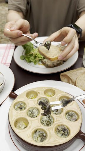 What a lovely meal! We tried several French classics — escargots, frog legs, and duck terrine to start, followed by hanger steak and veal liver for mains. Everything was cooked perfectly and full of flavor. The liver was very tender, and the red wine sauce is really tasty. I dip the bread with the sauce. The steak juicy and well seasoned, but some part is a little bit hard to bite. Both came with fries. The escargots and frog legs were especially fun to try — rich, garlicky, and so satisfying.