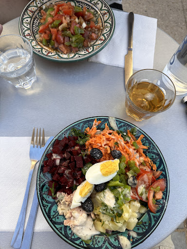 Nous en sommes sortis enchantés ! Et nous nous sommes régalés. Une belle carte proposant des pizzas, de bons plats Marocains, des burgers et des salades. Malheureusement pas d'entrée. Nous avons mangé la très bonne Pastilla au poulet, le succulent Couscous royal et un bon Tiramisu. Les prix sont très abordables et le rapport qualité/prix au maximum ! La présentation des plats est très soignée - c'est très important - et nos papilles se sont régalés. Le service est attentionné et assez rapide ( nous n'étions pas pressés). L'ambiance du restaurant est sympathique, même si les travaux ne sont pas encore totalement terminés.