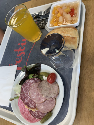 Read moreSinon l on doit manger à Avranches on va directement à la cafétéria. Parmi les plats du jour proposés on trouve toujours quelque chose à notre convenance, hier le steak était extrêmement tendre, assorti de petits légumes, simple et efficace. La personne en caisse était super sympa 😁 Le seul bémol pour moi : les desserts... qui font desserts de cantine... Et le prix des gâteaux 3.50 ça fait cher la part pour un...
