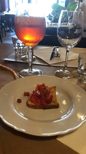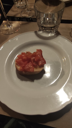 On a adoré ! Que ce soit le service adorable de bout en bout, tant de la part du jeune homme que de la demoiselle, la cuisine savoureuse qui fait honneur à la tradition d'authenticité italienne avec des produits simples mais de qualité, le cadre charmant où l'on aperçoit le basilic buissonnant effeuillé dans l'assiette, la belle pièce de charcuterie passée à la lame au moment de servir, la déco chaleureuse... Petite bruschetta en amuse-bouche, on commence très très bien avec une huile d'olive qui ravit les papilles. Nous avions pris la (délicieuse) burrata en entrée, et elle était accompagnée de bonnes tomates bio et de petites fraises aussi goûtues que si on venait de les cueillir au jardin. Plat principal : persillade de seiches pour l'une, saltimbocca à la romaine pour l'autre. Un régal, cela faisait longtemps que je n'avais pas autant apprécié des courgettes, et la sauce à la sauge était d'une finesse... Les desserts étaient également excellents. Bonus sur le conseil en vins : Oscar nous a très bien aiguillées et nous nous sommes vraiment régalées, à tous points de vue. Un grand merci encore une fois. Je reviendrai vous voir avec...
