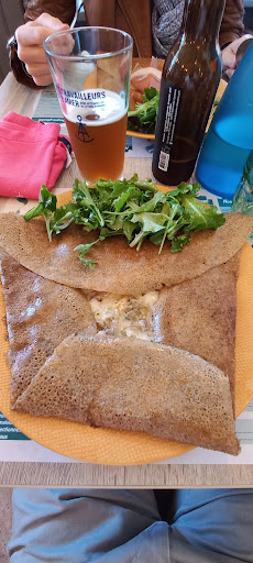 Jour de marchĂ©, nous nous sommes arrĂȘtĂ©s dans ce restaurant pour manger en famille. Le gĂ©rant est super accueillant et souriant, la dĂ©coration sympa. Nous avons commandĂ© du pĂątĂ© en entrĂ©e qui venait de la boucherie du coin, super bon ! Les enfants ont eu leur plat rapidement ensuite, ce qui Ă©vite de les faire attendre trop longtemps et qu'ils s'impatientent. Nous avons commandĂ© une galette livaronnade pour ma part et tartiflette pour madame. Que dire ... EX-CE-LLENT ! Pour les enfants plus "classique" avec saucisse frites. La saucisse est trĂšs copieuse et nous avons pu goĂ»ter cette saucisse qui vient aussi de la boucherie du coin et lĂ encore c'est excellent. On sent que les produits sont soigneusement sĂ©lectionnĂ©s et cuisinĂ©s avec le coeur. Puis nous avons terminĂ© sur une touche sucrĂ©e avec une crĂȘpe la cahoterie et une crĂȘpe caramel beurre salĂ© (salidou). Cette glace Ă la teurgoule qui accompagnait le dessert se mariait trĂšs bien avec le crumble et les pommes. Pour les enfants une crĂȘpe au chocolat, sans commentaire, les assiettes Ă©taient vides ! Nous nous sommes rĂ©galĂ©s du dĂ©but Ă la fin ! Nous apprĂ©cions cette mentalitĂ© qui fait fonctionner les artisans locaux et utilise des produits frais et de qualitĂ©. Nous y reviendrons sans hĂ©siter ! D'ailleurs... Le soir, nous nous y sommes retournĂ©s avant notre dĂ©part ! L'apĂ©ritif irlandais du moment est un rĂ©gal. Une galette Seguin et une galette Normande pour les adultes et pour les enfants une assiette de saumon frites. Le tout encore...