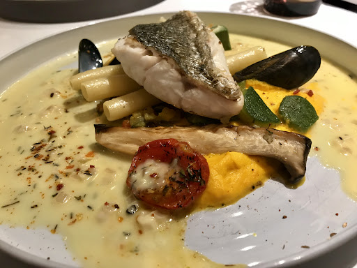 Incredibly delicious cuisine! We ordered first and second courses for each person and 1 desert to share cause really hadn’t a place in our stomachs😅 hot oysters and foie gras were just perfect, as a second course we took a monkfish with seasonable vegetables and wild fish with cabbage(!) yes, sounds strange but it was like I just have tasted a heaven😋a lemon tart for two of us was a perfect ending🥰 so 1 aperitif (a glass of 10 years Porto), a glass of Chardonnay 2022, earl grey tea, espresso, 2 first courses, 2 second dishes, 1 desert for 114€. Absolutely important to mention a perfect service and a great view by the sea. Highly recommend! Also it is better to make a...