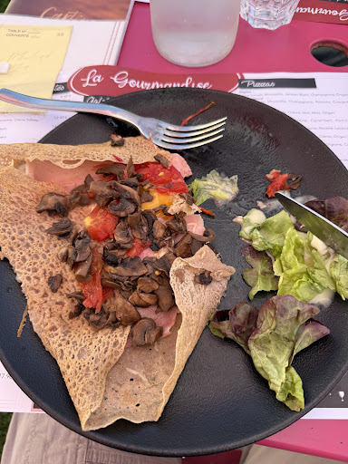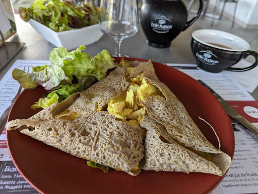 Read moreWe were staying Beauvoir for a few nights and this place was the only place which was open for dinner. They had a carpark so you could drive down and not have to park on the road. The guy was friendly and led us to a table. The dining area was fairly large and could accommodate quite a few groups. The menu has galettes, crepes and other specialties. I just had the four cheese galette and the frangipani crepe. Both were quite tasty and delicious. The galettes cam with a small side salad. I quite enjoyed the food and the service was quite nice. It They had an interesting statue of Charlie Chaplin (?) out front by the parking lot so something to see apart from...