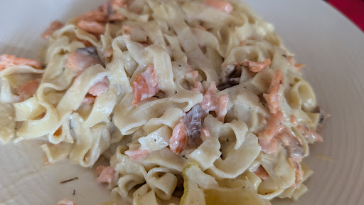 As the only place open on a wet and cold Monday night in late October, we had no alternative but to eat here. The interior is simple but welcoming. We were quickly shown to a table, but then it was at least 10 minutes before we were given a menu, and told that there were no salads available. Seeing as the first page of the menu offered at least 6 salad options, and that is what I’d hoped to have, I was flummoxed. The waitress moved away without asking if we’d like a drink. It was another 10 minutes or so before anyone returned to take an order.