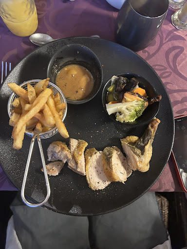 Service staff are very friendly and will come around to check on you. If you don't speak French, use a Microsoft or Google Translator to read the menu and communicate. Dishes are pretty classic. Beef fillet comes with a red wine jus, mixed vegetables and fries. Duck breast comes in 2 sizes (half and full size), paired with mixed vegetables and fries too. There is a choice of fish (pollack or mullet) and it comes with a decadent sauce. If you order mussels as a main, expect a big pot with fries. We struggled to finish it.