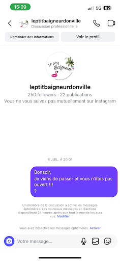 nous sommes passes en debut setptembre .chere madame et vous etiez bien ouverts..Comment pouvez vous affirmer que je sois un concurrent? Je suis bien loin de cette professsion. On peut faire du fait maison comme vous le dites certainement mais cela peut etre pas bon aussi / et c est votre cas . Cet ete nous sommes passes chez vous acheter une glace a l italienne au chocolat ..et nous sommes venus vous signaler que le chocolat piqué..il avait tourner .. ca peut arrive vous nous avez dit .. avec la chaleur... Faire du maison c est honorable mais encore faut il le savoir faire et etre du metier ..ce qui n est pas votre cas..ca ce voit a votre organisation de travail ca court dans tous les sens. Quand a ma profession je ne vous dis pas ce que je fais parce que je pense que vous n allez pas aimer ..et vous me parlerez ainsi. Belle...