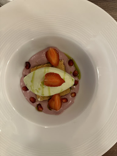 Pour le dessert, j'ai choisi celui au tapioca, abricot et caramel... Très déçue par le dessert qui est loin derrière la qualité de l'entrée et du plat. Une fois de plus pas d'abricot dans le dessert bien que précisé sur la carte. Après en avoir parlé au serveur, celui-ci m'indique que ce n'est plus de saison mais remplacé par de la figue... Pourquoi n'est ce donc pas spécifié sur la carte ?? Pourquoi ai-je de la pêche dans mon plat (hors saison donc) mais pas d'abricot dans mon dessert ? Très déçue et triste en sortant du restaurant qui était pour moi le saint graal où j'irai lorsque je pourrais me le permettre financièrement. Selon moi il y a un énorme fossé entre la qualité du l'entrée et du plat comparé au dessert, tapioca bien cuit mais dessert lourd et très peu intéressant. Mon compagnon aurait mis la note de 4/5, de mon côté je suis très déçue. Navrée pour ce commentaire. Belle journée à votre...
