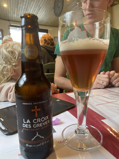 This was one of our favorite meals in France. We were waiting for a train in Pontorson and decided to have a leisurely lunch, and we lucked out by eating here. One of us had a pizza with bacon, mushrooms, green olives, and creme fraiche; the other had one of the specials, with andouille, carembert, and apples marinated in Pommeau. We had a coupe de Amarena for dessert. Our poor French vocabulary was more than sufficient to communicate what we wanted, and they were very patient with us. Everyone else in there was a local, and it was nice to pretend to be one as well, if even for just an hour...