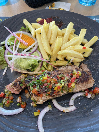 Read moreThere are only two restaurants in the closed off tourist area here and they are definitely abusing this. First of all there was no AC, so we were soaking in sweat after just minutes, the outside with 41 °C in the shadow was much more comfortable. But there are also like 4 or 5 menu items and they still manage to fail miserably. The ~18 EUR burger was at least 5 minutes past well done. An unedible dried out cracker, the toppings had no theme, overall it tasted worse than a 2 EUR bus stop kiosk cheeseburger that's been sitting on a shelf for a whole day. One of the worst burgers I've had. The fish and clams are a safer bet, at least they seem fresh even if the fish has no taste to it. But you're actually better off going into the tourist trap restaurants inside Mont Saint Michel itself, the food is much better and somehow cheaper. Also the service is terrible, good luck getting served while having a...