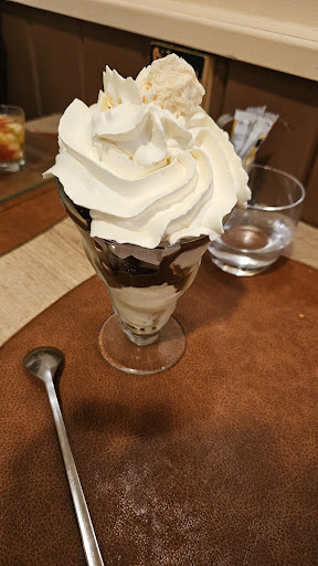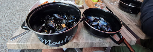 Read moreOn nous a servi l'apéritif en même temps que nos plats (une pizza et des moules)! Une pizza américaine (viande de boeuf haché bolognèse avec frites), nous avions retenu viande hachée pour le choix de la pizza et nous attendions à du haché de boeuf sur la pizza comme dans beaucoup de pizzaria. Grosse erreur! la formulation est très bien faite! Pas de viande haché mais des ronds de bolo! Un peu absurde pour une pizza base tomate de rajouter en garniture une sauce à base de tomates! Et les frites n'en parlons pas! Pas assez cuites et très grasses! Les moules étaient meilleures. Ne mangez surtout pas le beurre servi avec le pain il était visiblement sorti du frigo depuis le début du service (complètement fondu). Le dessert (tiramissu maison et crêpe maison) était relativement bien (crêpe un peu épaisse). Nous aurions bien fait une petite remarque en partant mais on ne nous a pas demandé si cela...