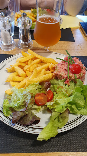 Malgré une bonne volonté des serveuses et une cuisine correct, j'aurai du mal à y retourner. Le plat du jour annoncé et commandé étant celui de la veille forcément arrivé à table c'est la surprise. On me propose de choisir un autre plat alors je demande la même chose que mon mari et là resurprise !!! J'ai la même viande mais pas le même accompagnement !! Des frites au lieu d'un panaché de légumes et d'un gratin de pommes de terre joliment servis. Manque de bol je déteste les frites. Retour en cuisine ! Quand le plat revient on sent bien que le cuistot en a marre de cette commande ! Plus rien de joli et disparu la petite sauce au poivre. On recommande un 2 eme boissons qui n'arrivera jamais !! Sans oublier l'emplacement de notre table trop proche de la porte battante de service que mon mari à pris dans l'epaule. Nous avons du traîner notre table sur 20cm pour nous mettre en securite. Alors meme si le cuisinier sort des plats correctes et que les serveuses ont le sourire et on su faire un geste commerciale je vais attendre avant de retenter une...