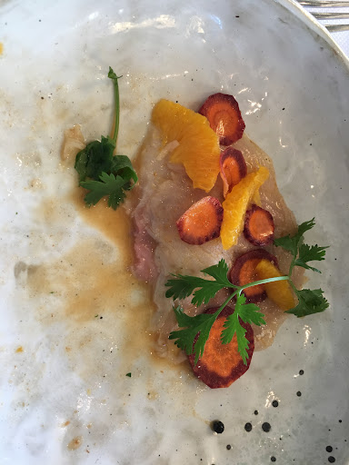 J’ai pris le menu du jour. En entrée un ceviche de dorade, visiblement préparé à l’avance, la chaire est trop cuite, pas d’assaisonnement, c’est très très fade ! Absence de citron vert et d’oignons rouges, les bouquets de coriandre sont disposés grossièrement sur le plat alors que le coriandre devrait être haché et mélangé au poisson! Des carottes qui n’apportent rien à l’assiette. Bref je ne retrouve pas le goût du ceviche...