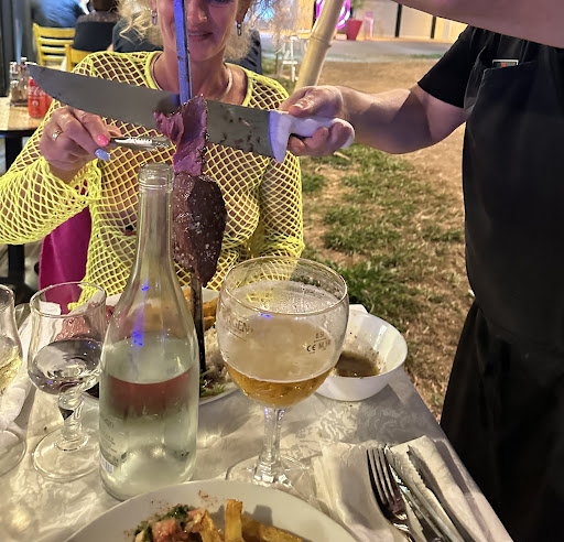 Read moreLes plats sont savoureux et en abondance. Le gros problème était Marine, la serveuse (limite agressive). On a du la supplier pour avoir du pain. Après un très long moment elle nous a apporté quand même du pain ... qui était coupé au moins depuis la veille. Très dûr, difficilement mangeable. Je lui ai fait gentiment la remarque (finalement j'ai eu peur!!!) et elle m'a apostrophée en me disant " oui, mais bon, c'est du pain coupé depuis le matin, je ne vais pas le perdre!!!". Hallucinant... Ma mère et mon fils ont été servis comme des rois par le patron, mais moi, pour avoir une portion de frites, j'ai vraiment eu du mal. Pour toute commande avec Marine, c'était le parcours du combattant, chaque fois c'et le patron qui lui rappelait de nous servir. En fin de service, elle nous a accordé les 20% (avec the fork)seulement sur la viande. J'ai payé les accompagnements de viande (15 €), pourtant, la fameuse Marine avait dit que c'est inclus avec la viande (quand elle les a littéralement jetés sur la table).On aurait dit un sketch... Honteux... Heureusement, les deux danseurs étaient fabuleux ! Je pense que le mépris de Marine était du au fait que j'avais réservé avec the fork. Dommage, finalement je n'y retournerai plus, malgré la promesse faite au patron qui s'en est...