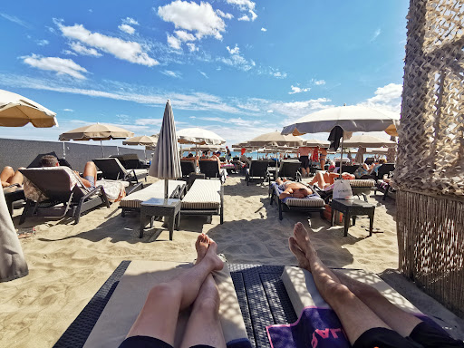 Génial ! Nous avons réservé pour le 22/07 afin de voir le spectacle de la patrouille de France. Ambiance très zen, reposante. Une légère ambiance musicale très douce. Beaucoup d'habitués et tout le monde fait attention de respecter les autres. Aucune obligation de consommer. Pour déjeuner sur place, il faut soit commander via un prestataire (2 bruschettas accompagnées de salades vertes, copieuses, bonnes, 21,20€ avec 2€ de frais de livraison et aussi très sympathique au téléphone). Soit on peut apporter son déjeuner. Si on veut des boissons, on va les chercher au comptoir, personne ne passe entre les transats toutes les 5 minutes pour demander si l'on veut quelque chose. 2,50€ le café (bon), 6€ le smoothie (bon), il y a d'autres choses mais c'est ce que l'on a testé, 25€ les 2 transats avec un parasol (on n'est pas serré les uns sur les autres. Une douche, un vestiaire toilettes nettoyé (sable) régulièrement et un parking gratuit à côté. Même si nous avions apporté un petit thermos de café, nous en avons quand même consommé sur place car quand on ne me force pas la main, je suis plus à même d'acheter Pour résumer un super endroit. Continuez comme cela, bonne saison et on l'espère à...