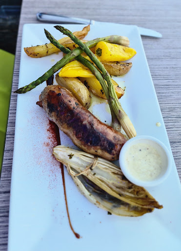 Read moreUn cadre sympa et des prix plutôt corrects nous ont conduit à aller dans ce restaurant. Nous avons été accueillis par une responsable qui avait envie d’être là comme d’aller au bagne, cela s’est reflété par son manque d’amabilité mais aussi de professionnalisme. Elle a pris notre commande sans même lever la tête pour nous regarder une seule fois et est repartie en salle, on la voyait au loin, débordée à ne rien faire, pas un sourire à qui que ce soit (peut être pour nous épargner un sourire édenté, qui sait). Nous avions d’abord pris une planche à partager à 17,60€ dont le ridicule avait pour caractéristique diamétralement opposée, sa qualité. Suite à cela nous avons dû relancer la fameuse responsable au bout d’une heure et quart car nos plats n’étaient toujours pas servis. Dans sa grande amabilité, la dame ne s’est pas excusée et a prétexté une forte affluence (on est en week-end de juin et le restaurant n’était pas complet, ça promet pour la semaine du 15 août). Bref, quelques minutes après les plats sont arrivés (avec son doigt dans l’assiette, très pro, toujours) et elle est repartie aussi vite qu’elle est arrivée. Nous avons essayé d’échanger un peu avec elle pour la détendre mais elle était fuyante et manifestement pas intéressée par son rôle de commerçante). Puis le miracle arriva : nous avons été servis ! (Vous non plus vous n’y croyiez plus, hein?) Bon, ce n’était pas de la grande cuisine mais pour de que l’on peut attendre d’un restaurant de bord de mer c’était plutôt bon.