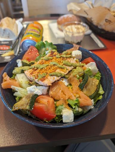 C'est un endroit ou je vais régulièrement avec mon fils les lundi (de préférence ici que chez les fat foods américains). Tout d'abord facilite d'accès et parking gratuit ! L'ambiance de la salle est agréable lumineuse, c'est un endroit ou je pourrais venir aussi pour prendre un goûter et travailler un moment en nomade, c'est adapter sans trop de promiscuité entre les tables, ( maintenant, on ne vient pas ici pour faire 2h de visio conférences c'est sûr !) l'accueil en caisse est souriant, et très avenant avec les enfants, c'est appreciable. La cuisine est faite maison, le pain en particulier, la cuisson également ce qui fait la différence pour moi avec les "grandes chaînes"sans intérêt. Là ou ça pêche un peu maintenant, c'est la fiabilité au niveau de la prise de commande, j'ai assez de recul maintenant pour dire qu'il y a souvent des erreurs (pour des raisons que je ne maîtrise pas... le système des bornes souvent en panne ? Est ce pareil au niveau des caisses ?...) Le plus désagréable maintenant, c'est cet homme - le gérant à priori - qui n'a pas avalé un clown et qui viendra vous voir persuadé que vous avez tord et qu'il a raison,... souvent a tord ☝️😉... il vient inquisiteur avec la mauvaise commande... " c'est le cavalier 18, là au moins on est d'accord ?!" [souris bon sang]... "le numéro de cavalier que vous avez est bien le bon, mais c'est sûr que ce n'est pas ce que j'ai commandé !"... toutefois un 3 d'encouragement pour le service, le patron tout seul obtiendrait 1,5)