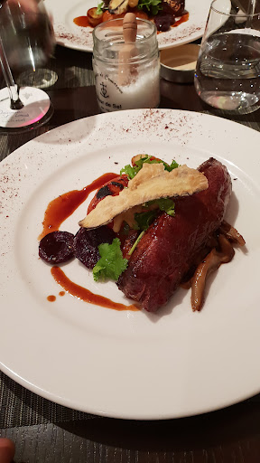 Malheureusement, sans vouloir être trop assassine, le chef a sans doute des choses à revoir. L'amuse-bouche était beaucoup trop gras : épeautre, asperge et une tonne d'huile. Ça n'avait pas de goût, pas d'assaisonnement, on ne sentait que l'huile dans la bouche, vraiment c'était particulièrement désagréable en bouche. Pour ma part, j'ai pris une entrée de maquereaux, avec salade et tomates. Le maquereaux à l'huile j'entends que ça soit gras, mais là à nouveau c'était vraiment beaucoup trop gras. Ça baignait dans l'huile, c'était écœurant et pourtant le maquereau en lui-même était bon. La salade n'avait pas de goût à part celui de l'huile, aucune sauce, rien, pas d'assaisonnement, c'était fade. Concernant le plat, j'avais pris un médaillon de cochon, la viande était assez bonne. L'accompagnement, poivrons et pommes de terre avec une sauce dont je ne me rappelle plus. Malheureusement la sauce était trop absente, alors que pour un plat assez simple c'est elle qui fait la différence. Mais encore, ça allait. Bémol aussi sur le fait que j'ai demandé à ce qu'il n'y ait pas d'oignons dans mon plat à cause d'une maladie qui fait que je dois absolument éviter d'en manger, et ma demande n'a pas été respectée. Pour finir, énorme bémol sur le dessert. J'ai pris un baba au rhum et là, il s'est passé quelque chose de tout à fait hallucinant. Le serveur a été parfait tout au long de la soirée, mais je ne sais pas quelle mouche l'a piquée en fin de soirée. Il me propose deux rhums pour mon baba, je suis un peu étonnée de devoir faire les choses moi-même, mais encore, ça passe. Il m'invite à goûter les deux rhums, et là... Avec mon compagnon on a halluciné. Il a étalé mon baba dans l'assiette, a pris MA fourchette, a coupé mon baba en deux et a complètement noyé une partie du baba avec le rhum. Mon compagnon a fait une remarque et il s'est calmé sur l'autre moitié. Mais c'était immangeable, il n'y avait que du rhum. Et surtout, le serveur a reposé la fourchette dans mon assiette, j'ai trouvé ça très moyen et encore plus en période de covid. Selon moi, le chef aurait dû être capable de proposer un baba bien dosé et équilibré, libre après au client de demander s'il peut rajouter du rhum si ce n'est pas assez corsé. Mais là, c'était n'importe quoi. Je n'ai rien mangé de mon dessert.