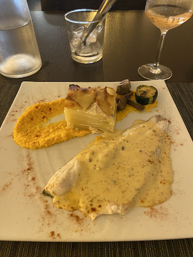 Read moreBien difficile de noter ce restaurant : J'y suis allé à plusieurs reprises, avec des invités divers, et ce fut différent chaque fois... Parfois 5 étoiles, parfois moins et même une fois 1 seule... Alors, je risque de ne signaler que des points négatifs,.. Le service est un tantinet variable en termes d'efficacité, mais toujours courtois. L'ambiance est un peu trop feutrée à notre goût. Quand nous sommes les seuls clients, un peu de musique serait la bienvenue, sinon on se retrouve vite à parler à voix basse. Inversement, j'ai dû moi-même demander à un excité du portable d'aller terminer sa conversation à l'extérieur... Mais ça, ça arrive partout ! Le cadre est un peu surprenant. D'après moi, le décorateur devait être spécialisé dans les bureaux, mais ce n'est que mon avis; d'autres ont bien aimé. La cuisine est excellente, mêlant des saveurs délicates à des produits frais. La présentation des plats est sobre, c'est un bon point. Mais, les portions sont un peu légères; un légume frais à volonté eût été le bienvenu. D'après un ami grand amateur de vin, la carte des vins est intéressante. Par ailleurs, il a renvoyé une "mauvaise" bouteille sans choquer personne (heureusement, il est capable de provoquer un scandale)... Pour le reste, il était extrêmement satisfait (côté saveurs, en tout cas, car il s'est plaint d'avoir faim en sortant). Pour ma part, je ne dédaigne pas, certains jours, un pichet frais d'une bonne piquette d'un vin simple de pays, j'ai été frustré... Heureusement, il y avait de l'Orezza ! Quant à mes vieilles tantes, qui trompent leur ennui dans des restaurants de grande gastronomie, elles étaient ravies. Nous avons toujours mangé à la carte (de crédit ! €€€). Il faudrait que je revienne...