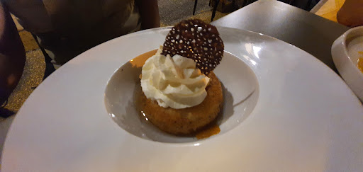 Desert was a bit of a let down. The rum baba was cold and floating in about half a pint of the eponymous liquid which obliterated any taste of the cake itself. The application of heat and sugar, together with some moderation on the part of the rum pourer would have done wonders. Any more than a spoonful jeopardised a safe drive home and there was more left behind than consumed. However, other diners seemed to be receiving more alluring dishes, including an attractive chocolate cake and some kind of fruit compote. So poor selection here may have let us down.