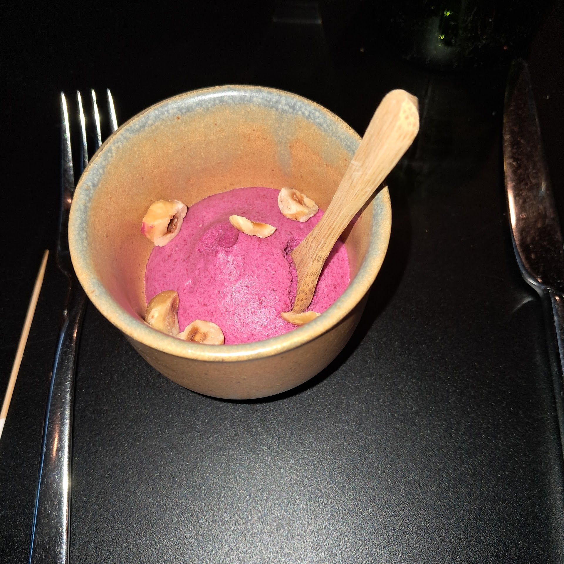 After a lukewarm welcome it felt like you had to leave in 10 minutes. Since it was our anniversary we wanted to start with a nice glass of champagne which before it arrived was already the drink for the amuse which was almost on the table before we sat down.
