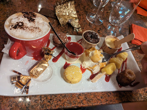 Chaise cassée, tables mouillées et pieds dans l'eau après l'averse. Insistance du patron pour commander une côte de boeuf à 60 EUR. Ne propose pas de vin pour le repas. Ne sait pas tenir sa place vis-à-vis des clients, propos déplacés. Se mêle des échanges parent-enfant. Impose des plats à ses clients. Restaurant soi-disant sans gluten, mais pas de pain sans gluten proposé. Desserts sans gluten quasi inexistants. Les serveurs commencent à ranger les chaises et tables de la terrasse avec des câbles anti-vol en présences des clients restants. Le patron nous demande de régler au moment où les dessert arrivent, pour pouvoir fermer sa caisse et veut nous présenter l'addition.