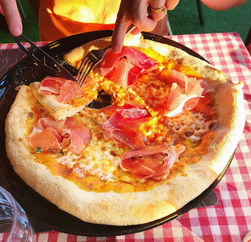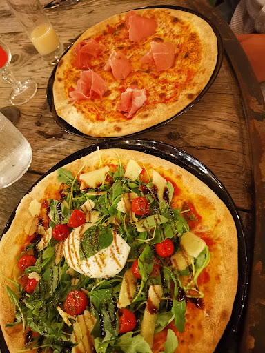 Passez votre chemin ! Une jeune serveuse stressée qui renverse sur votre tee shirt une part de votre pichet de rosé, une pizza commandée bien cuite qui arrive "molassonne", et puis pendant plus d'une heure, plus rien, plus personne, surtout pas le Tiramisu pistache dont vous rêvez, il n'arrivera jamais. Quand je vais oser le signaler, avec calme, au patron, quadra nerveux et très agressif, après m'avoir encaissé [30 € "La Molassonne" et le pichet "renversé" ], il deviendra grossier, allant jusqu'à me tutoyer - une première à 73 ans - et à me poursuivre hors du restaurant, tout en me méprisant parce que j suis venu en vélo: "Casse-toi avec ton vieux vélo." Plus grave, l'hygiène. En rejoignant les toilettes à la propreté douteuse, vous ne pourrez rater le "parking à Molassonne", ces pizzas prêtes à partir, garées à 1m de la porte d'entrée des WC. Enfin, vous serez servis sur de vieux tourets en bois brut, fort chaleureux, mais vos couverts, votre pain, etc, devront se contenter de cette surface encrassée, car impossible à nettoyer et ne rêvez-pas, dans ce genre d'endroit on ignore tout du set de table, même en papier.