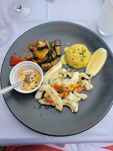 Face à la Marina, petit restaurant d'une vingtaine de tables terrasse incluse. Fortement conseillé par un site très connu de classements suite à des avis de clients (ou pas) dont le nom peut-être traduit en français par "Avis de voyages". Accueil sympathique sans chichi : nous étions 5 et avons déjeuné sur une table de 4. À la guerre comme à la guerre : difficile d'arrondir des tables rectangulaires et impensable de nous concocter 5 places sur une table de 6, optimisation de l'espace oblige. Menu avec 5 propositions alléchantes pour chaque partie du repas avec un tarif attractif. Pas besoin de réclamer une carafe d'eau fraîche par ces températures frisant les 30°. Les moules gratinées gé-ni-ales ! Charnues et travaillées dans mesquinerie. Pour un spécialiste des produits de la mer, l'unique plat de viande du menu est simple mais savoureux et tendre à souhait et accompagné de légumes à la cuisson et assaisonnement sans défaut. Les dos de cabillaud d'une taille plus que raisonnable sont savoureux et accompagnés également de légumes. Par contre, là ou les carnivores ont eu droit en plus des légumes à des frites maison, les piscivores n'ont pas eu le droit à un peu de riz. Dommage mais pas rédhibitoire. Les desserts simples mais efficaces et fait maison également. La fin de service et fermeture approchant, on nous a même proposé de rester sur place en terrasse pour continuer nos conciliabules effrénés aidés en cela par une nouvelle carafe d'eau alors que d'autres nous auraient expédié à l'autre bout du...